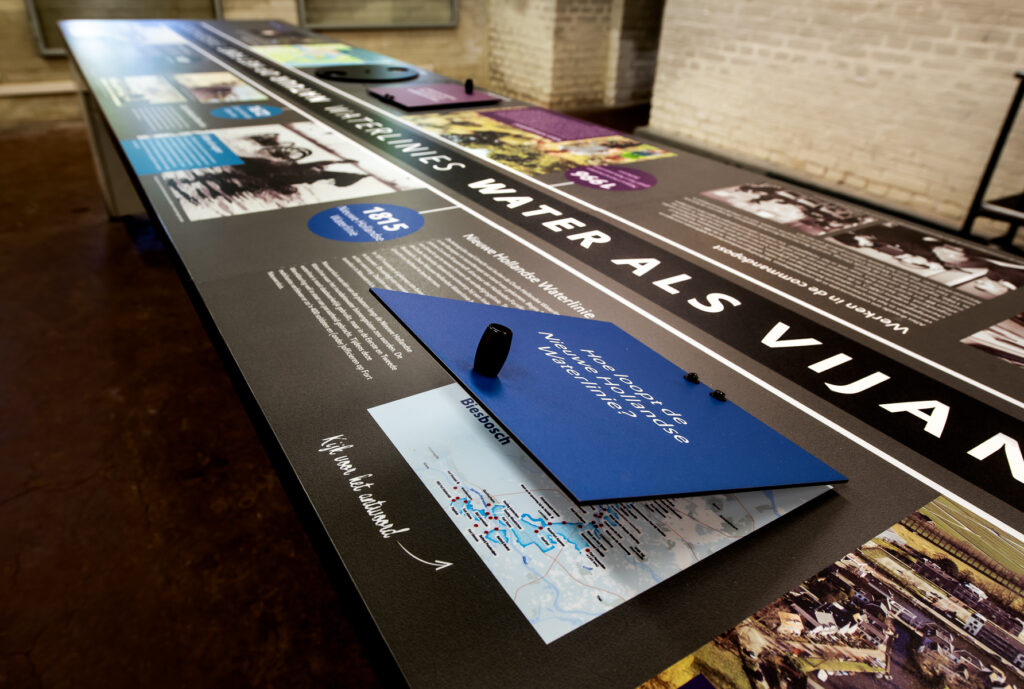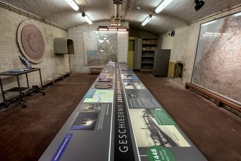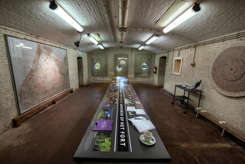 In een van de ruimtes staat een indrukwekkend, vijf meter lang oud bureau dat dienstdoet als drager van een uitgebreid tijdlijn van het fort en de omgeving. De tijdlijn laat zien welke rol de natuur en het landschap rondom het fort hebben gespeeld en wat Natuurmonumenten hierin betekent.