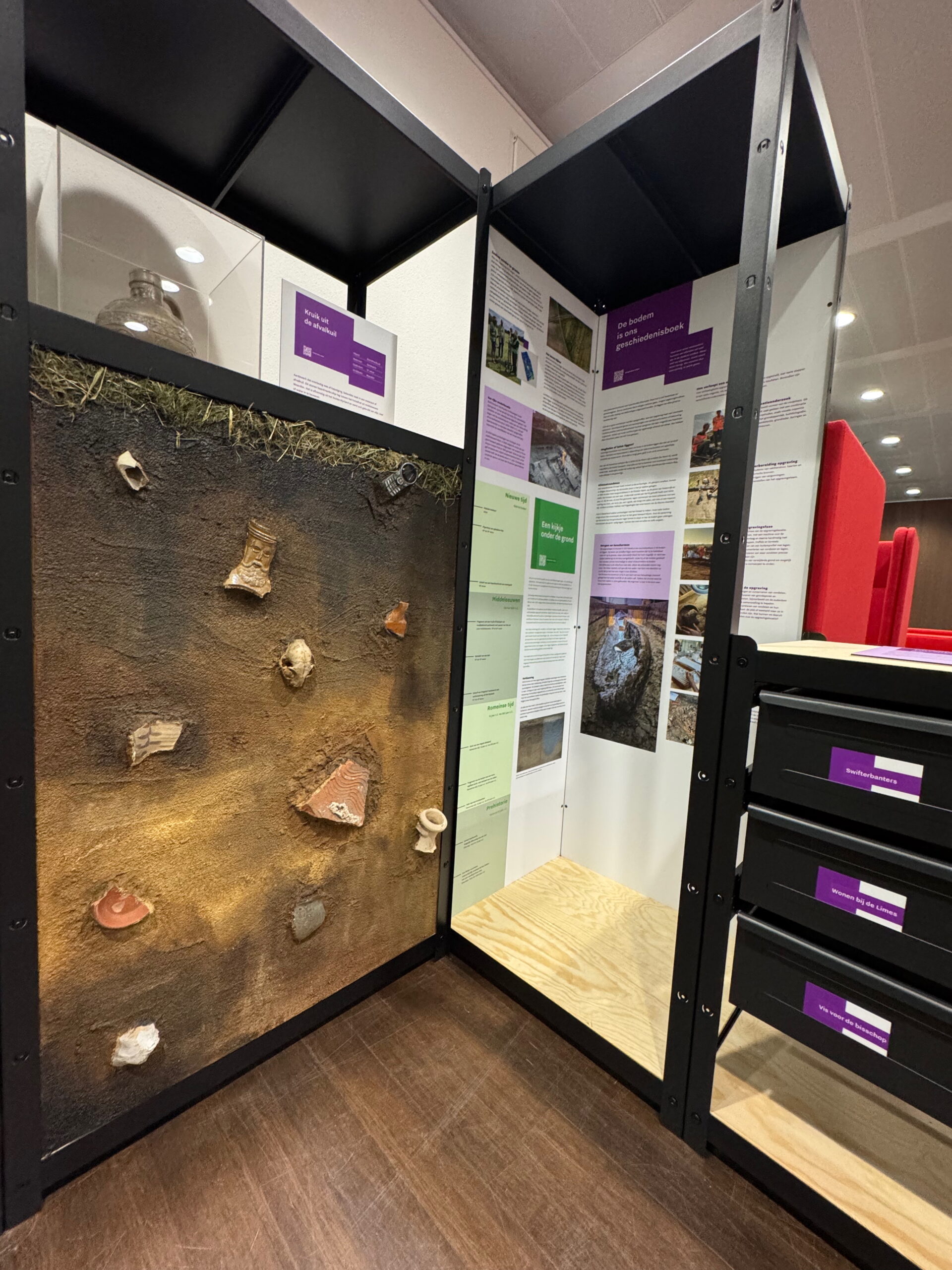 Om deze geschiedenis dichter bij de inwoners te brengen, ontwikkelden wij in opdracht van de Provincie Utrecht een reizende wisseltentoonstelling die archeologie toegankelijk maakt voor iedereen. Het doel van deze tentoonstelling is om het publieksbereik te vergroten en de verbinding met de eigen leefomgeving te versterken. Door archeologische vondsten letterlijk naar de mensen toe te brengen, ontstaat niet alleen meer kennis van het verleden, maar ook een groeiende trots op de eigen geschiedenis.