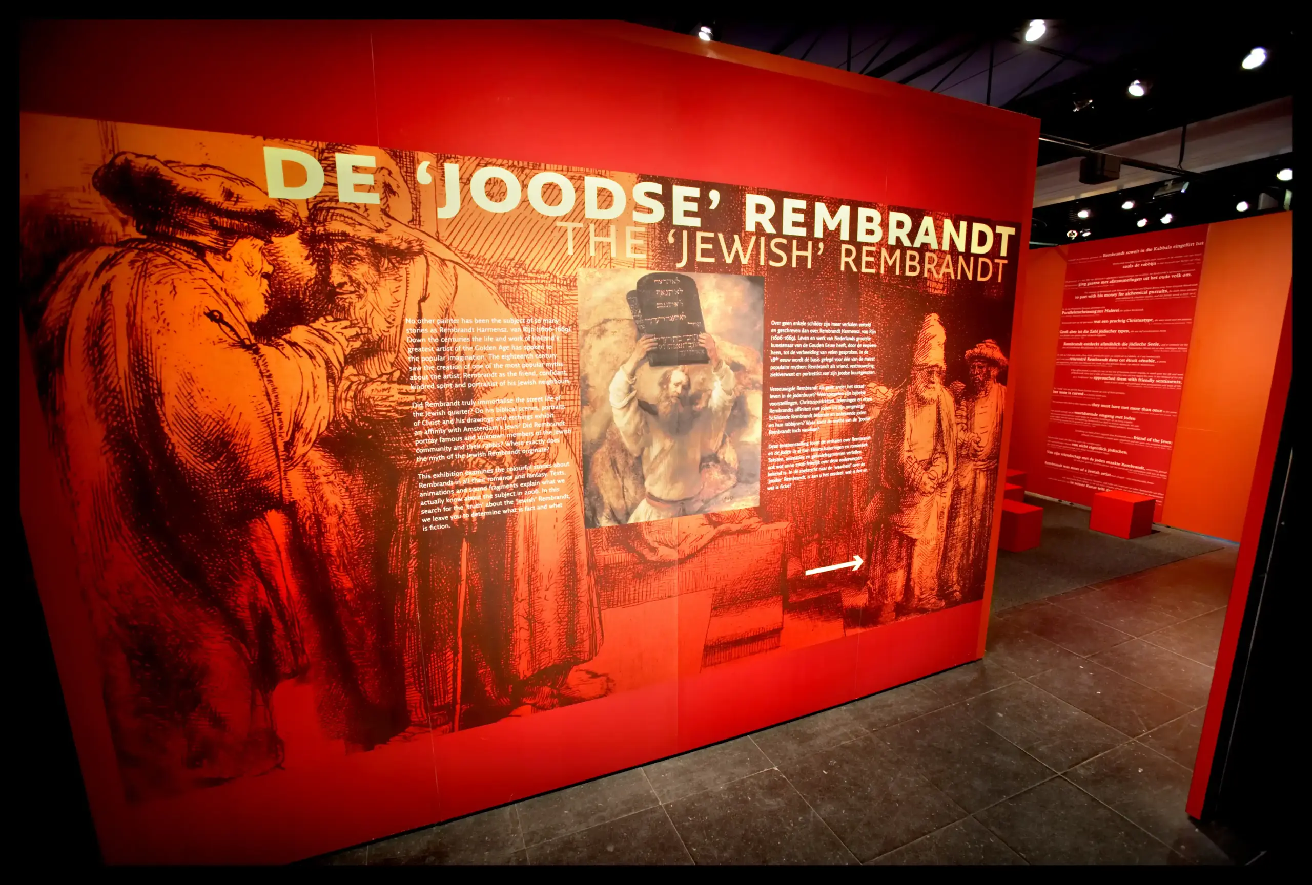 In opdracht van het Joods Historisch Museum ontwierpen wij de tentoonstelling De Joodse Rembrandt, onderdeel van het programma Rembrandt 400. De expositie toont een bijzondere collectie meesterwerken van Rembrandt en verkent de verhalen, mythes en feiten rondom zijn vermeende band met de Joodse gemeenschap.
