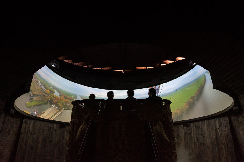 Bezoekers worden omringd door een panoramisch beeld dat zich over 180 graden uitstrekt. Hierdoor ontstaat het gevoel dat je daadwerkelijk boven de Stelling zweeft en het landschap zich eindeloos voor je ontvouwt.