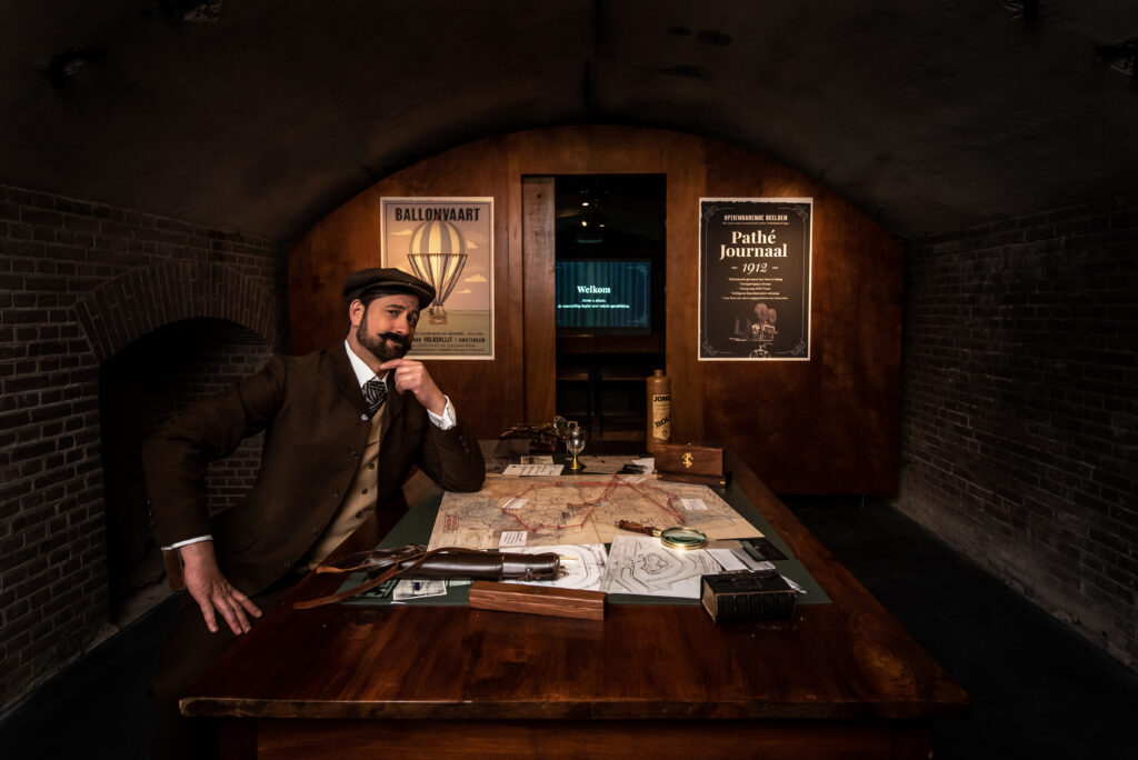De preshow vormt de opmaat naar de ballonvlucht: bezoekers stappen niet zomaar in een mand, maar in een verhaal dat zorgvuldig is voorbereid en dat hen al vóór vertrek onderdompelt in de wereld van Leon Mary en de Stelling van Amsterdam.