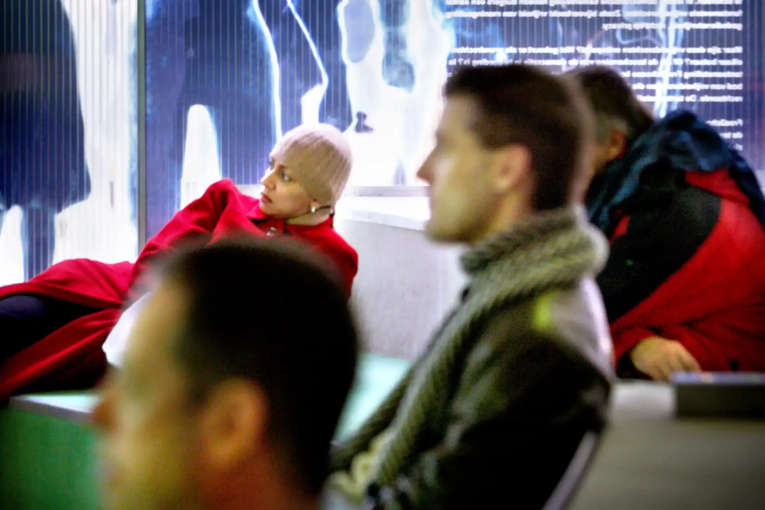De tijdelijke tentoonstellingsruimte in het Anne Frank Huis is omgevormd tot een toegankelijke lounge. Bezoekers nemen plaats op podia en zitelementen die zijn uitgerust met stemkastjes. Zo ontstaat een ontspannen, maar betrokken setting waarin iedereen actief kan deelnemen.
