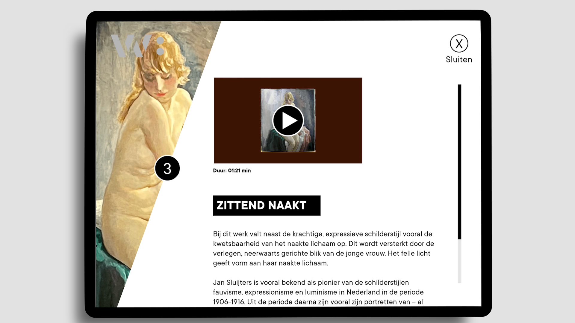 De tour biedt een rijke mix van audio, geschreven teksten, foto’s, video’s en animaties. Zo ontstaat een gelaagde, interactieve beleving die de collectie tot leven brengt en aansluit bij verschillende manieren van ontdekken. Bezoekers bepalen zelf welke thema’s zij willen volgen en hoe lang zij bij een onderdeel stilstaan.